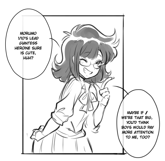 10 panels of cute giantess growth, plus the original layout and some commentary